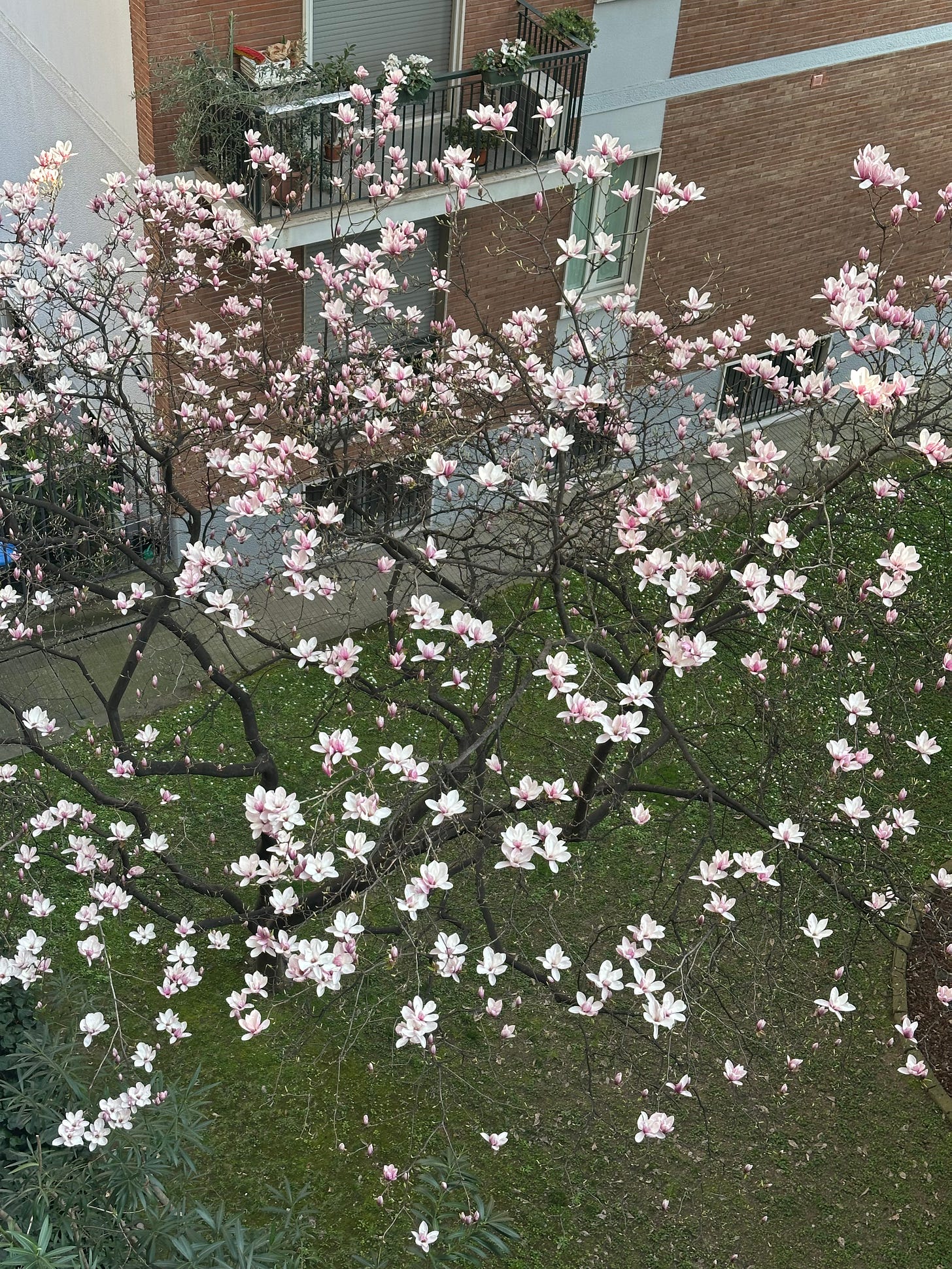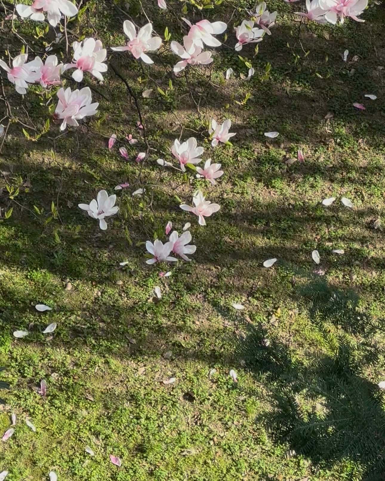 A week ago the magnolia flowers just outside my balcony were firmly held to their branches. Now they fall, petal by petal, until the tree, which once was so full, is now almost bare.