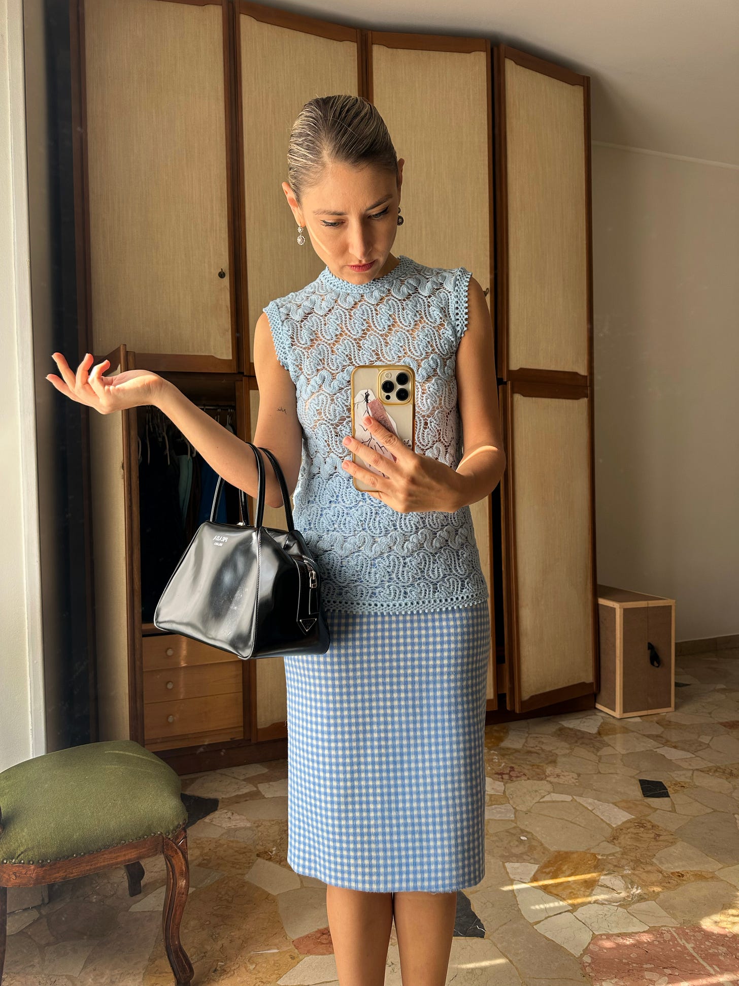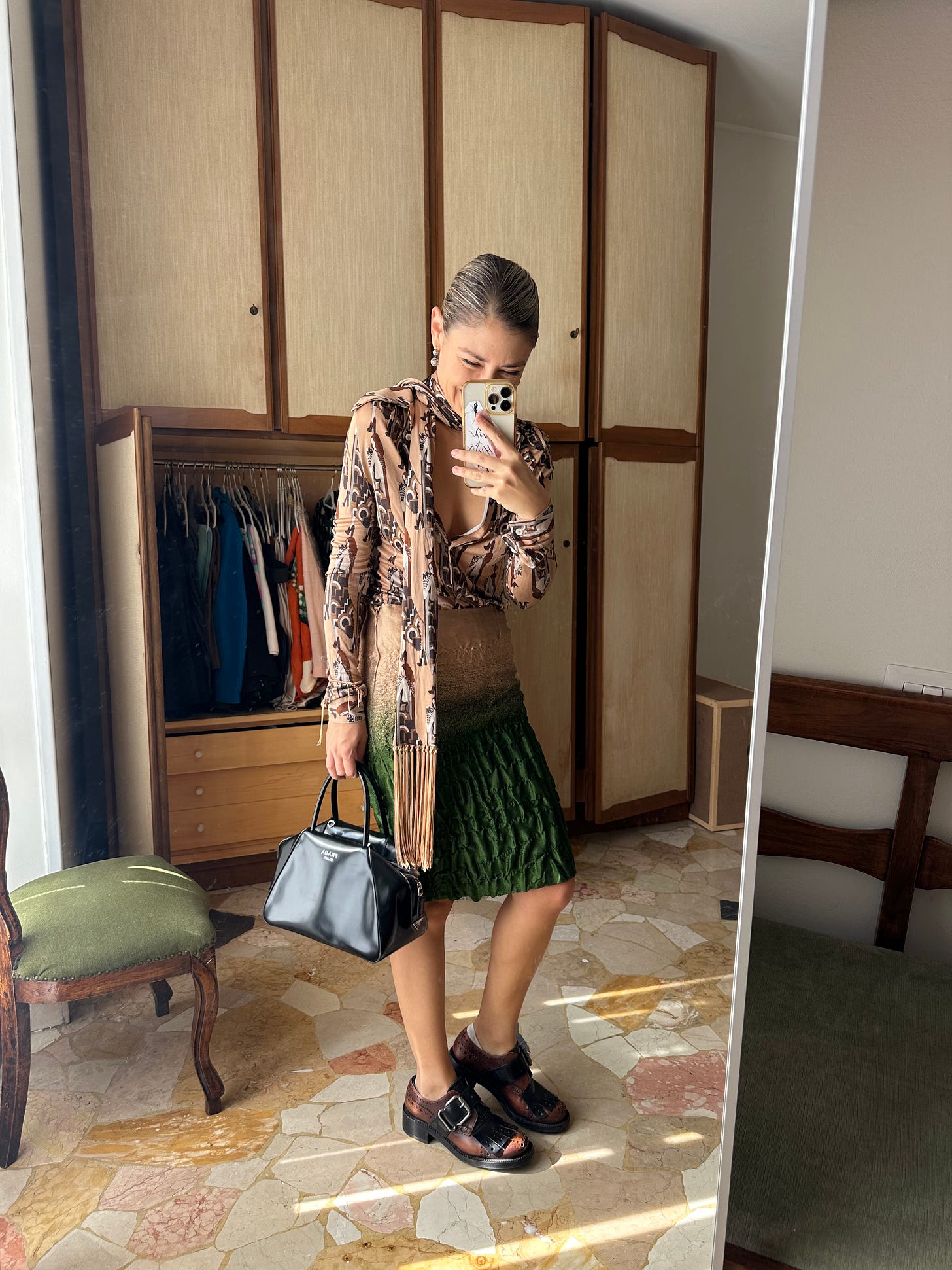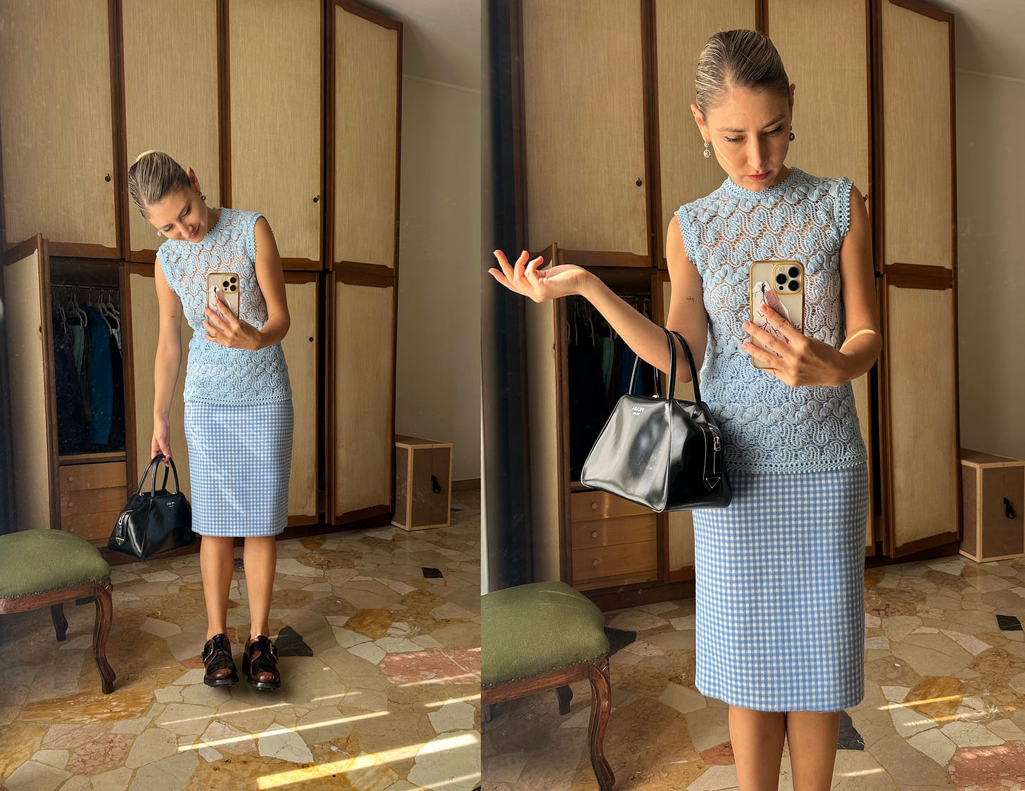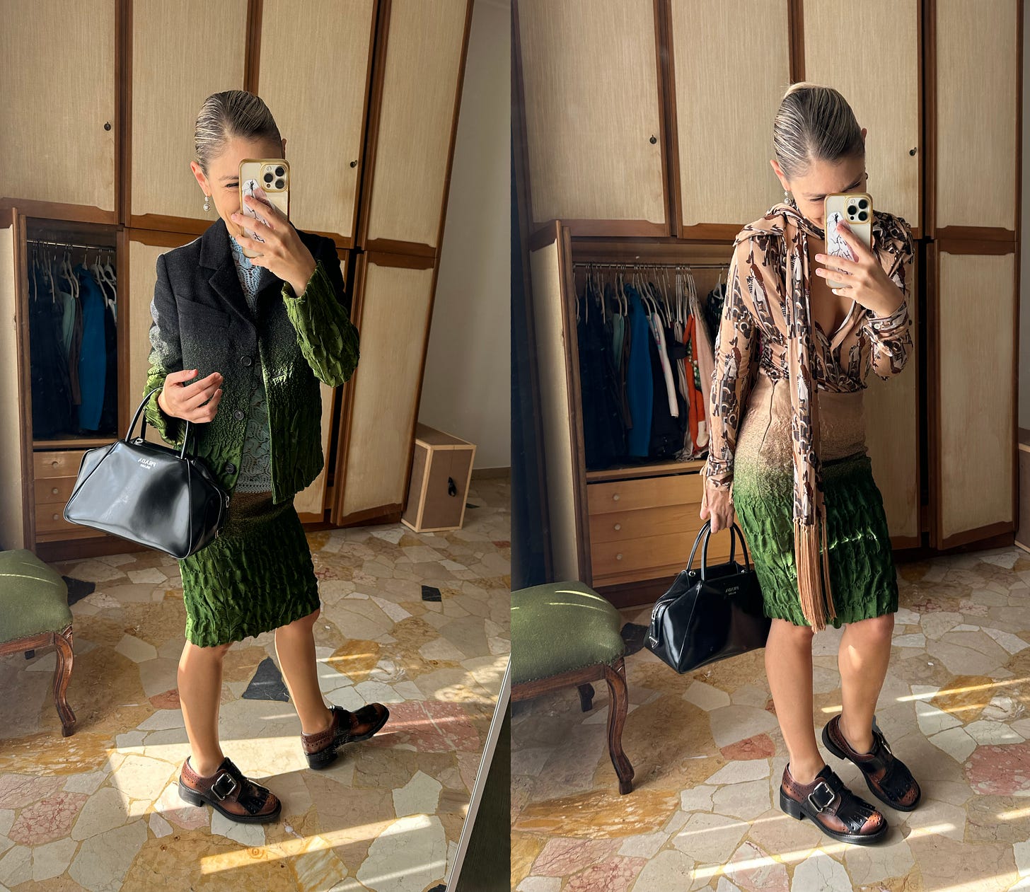 *Both this blue skirt and the green one prior are part of old Prada skirt suits, which I mix and match often.