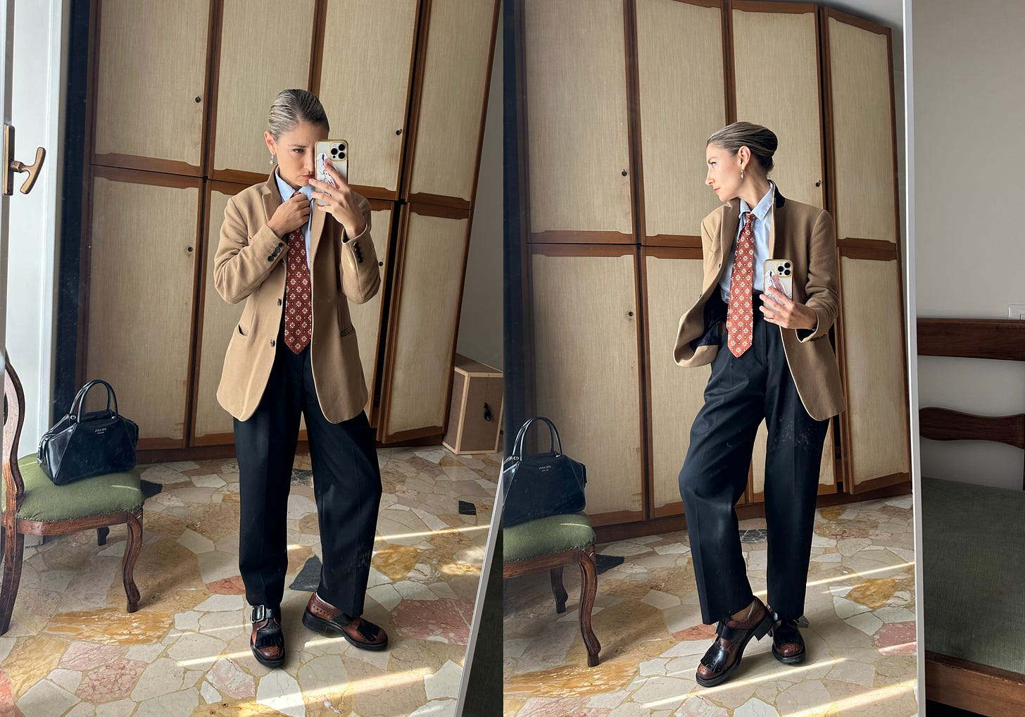 Even after developing a tight wardrobe and your unique “style signifiers”, never be afraid to play with new elements. I had a few vintage ties lying around, and after the passing of Diane Keaton last week, I was inspired to start playing with them.